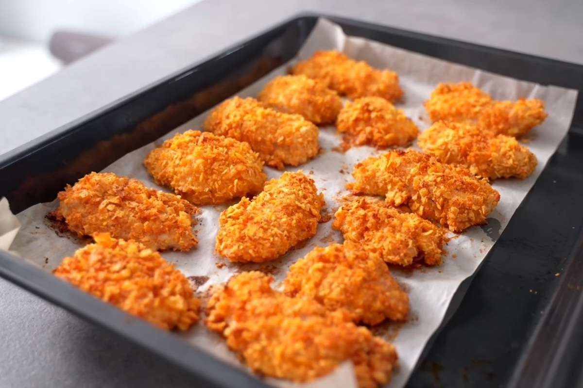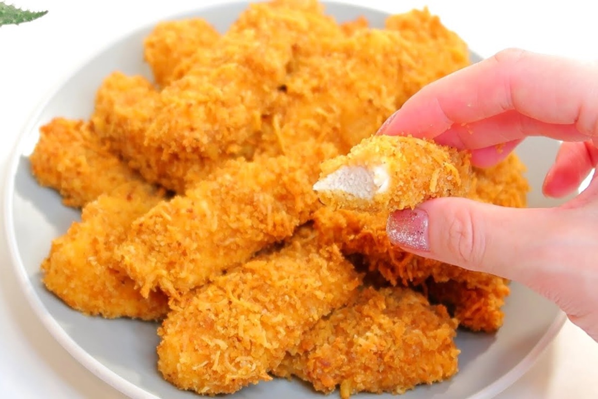 Os pedaços de frango crocantes são uma versão caseira do popular fast food, mas preparados com ingredientes simples e sem aditivos artificiais. São pedaços de peito de frango empanados com uma cobertura crocante que, depois de fritos, têm o mesmo sabor dos servidos nos restaurantes mais famosos. São ideais para festas – mas também como fast food caseiro para uma noite de cinema. São uma ótima alternativa aos alimentos altamente processados (especialmente para crianças e adolescentes), porque sabemos exatamente o que está no prato. São crocantes, agradam a quase todos e desaparecem rapidamente da mesa.