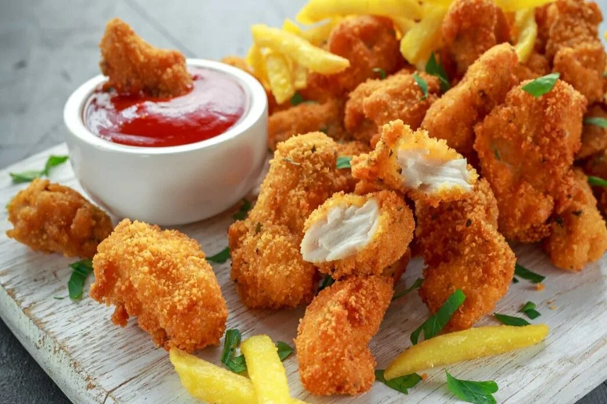 Os pedaços de frango crocantes são uma versão caseira do popular fast food, mas preparados com ingredientes simples e sem aditivos artificiais. São pedaços de peito de frango empanados com uma cobertura crocante que, depois de fritos, têm o mesmo sabor dos servidos nos restaurantes mais famosos. São ideais para festas – mas também como fast food caseiro para uma noite de cinema. São uma ótima alternativa aos alimentos altamente processados (especialmente para crianças e adolescentes), porque sabemos exatamente o que está no prato. São crocantes, agradam a quase todos e desaparecem rapidamente da mesa.